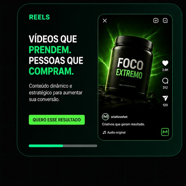 Stories, Reels, Feed, Ads, VSLs — todos os formatos otimizados para conversão.
