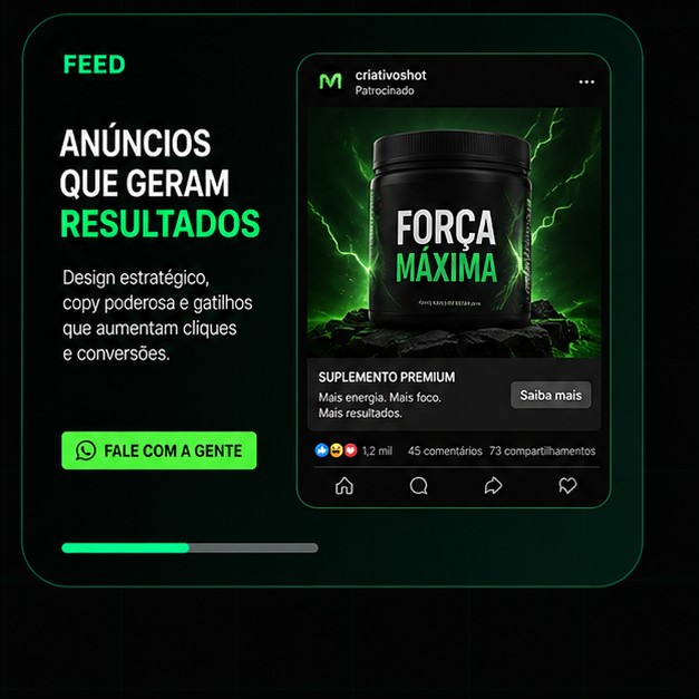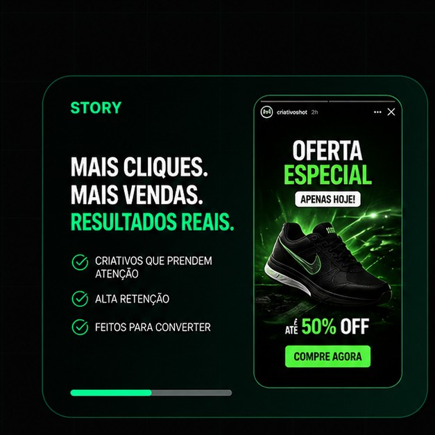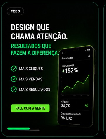 Criativos profissionais que aumentam cliques e conversões em até 24h.